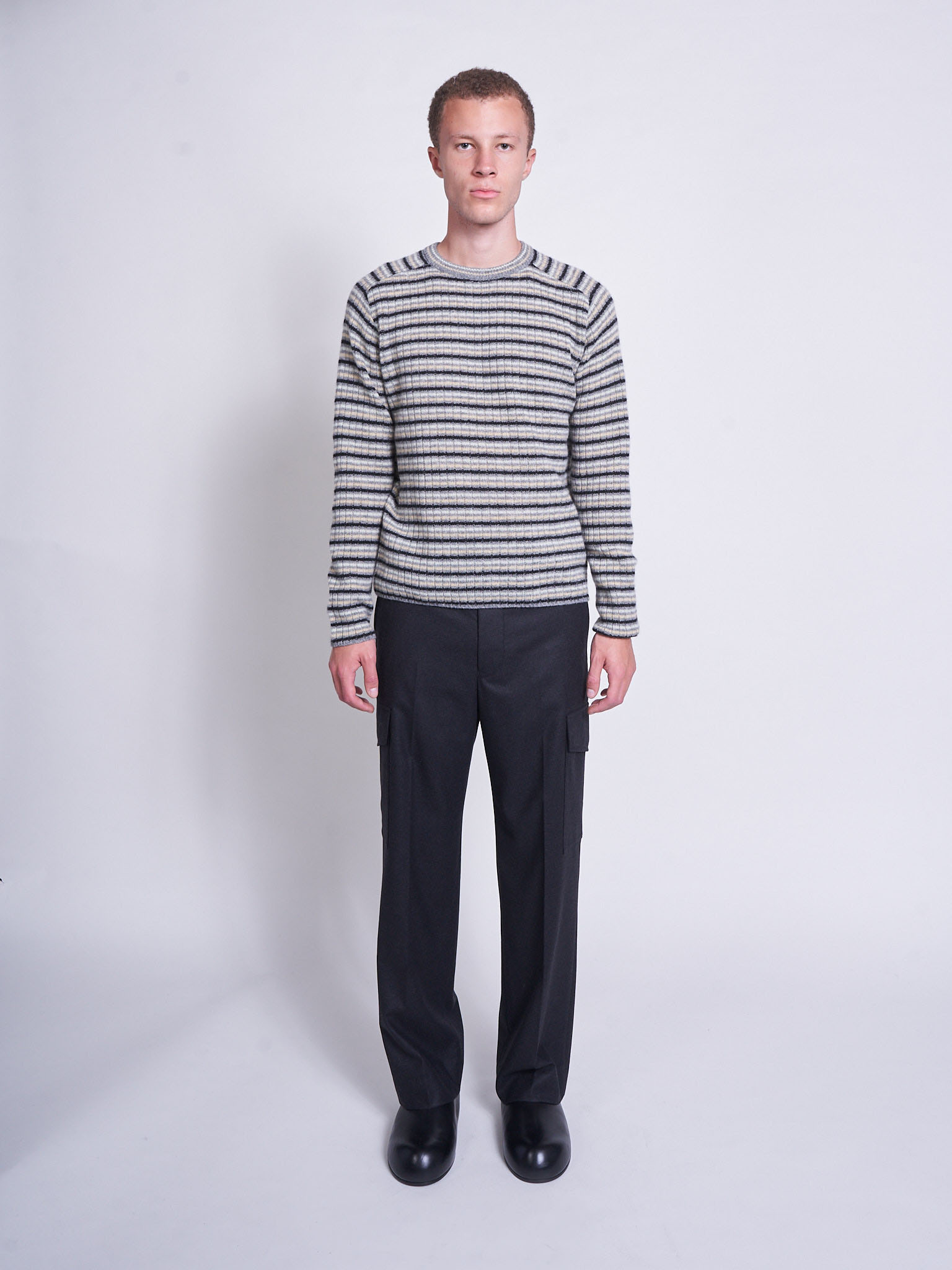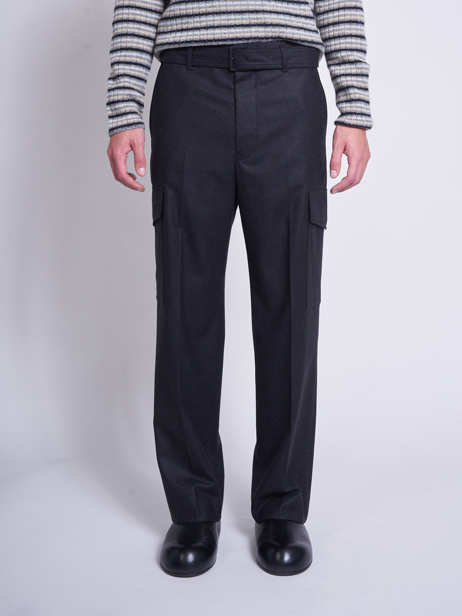 Top Charcoal Wool Fulling Flannel Cargo Pants