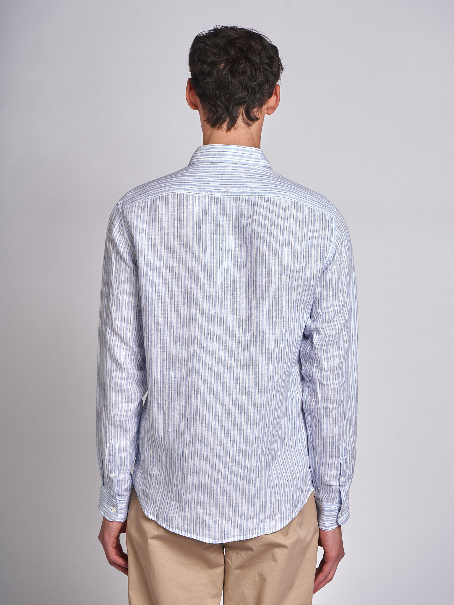 Sunspel: Blue Vintage Stripes Linen LS MSHT2106 Shirt