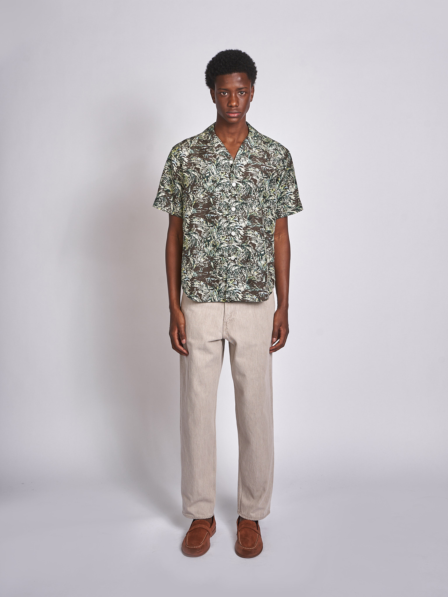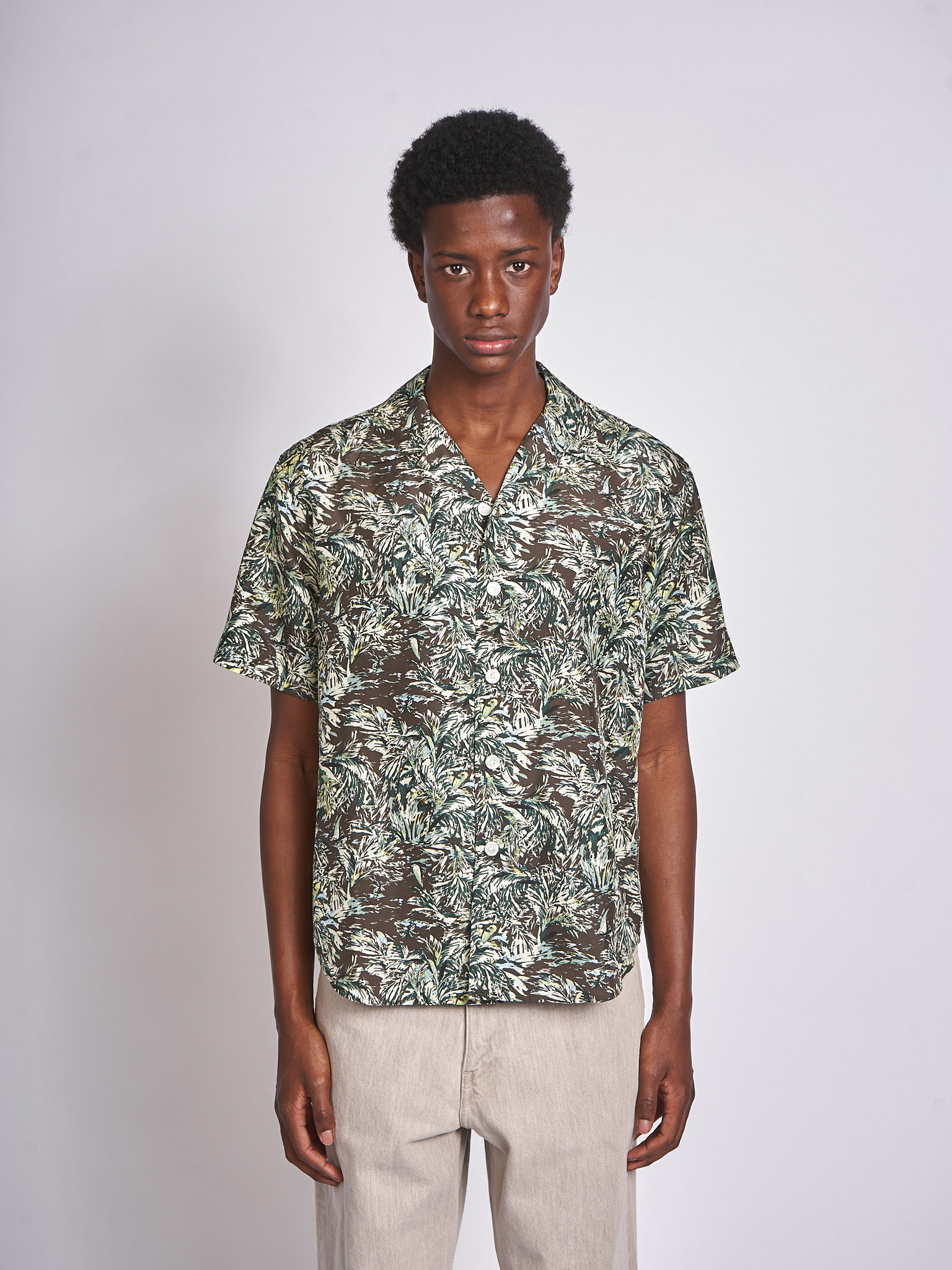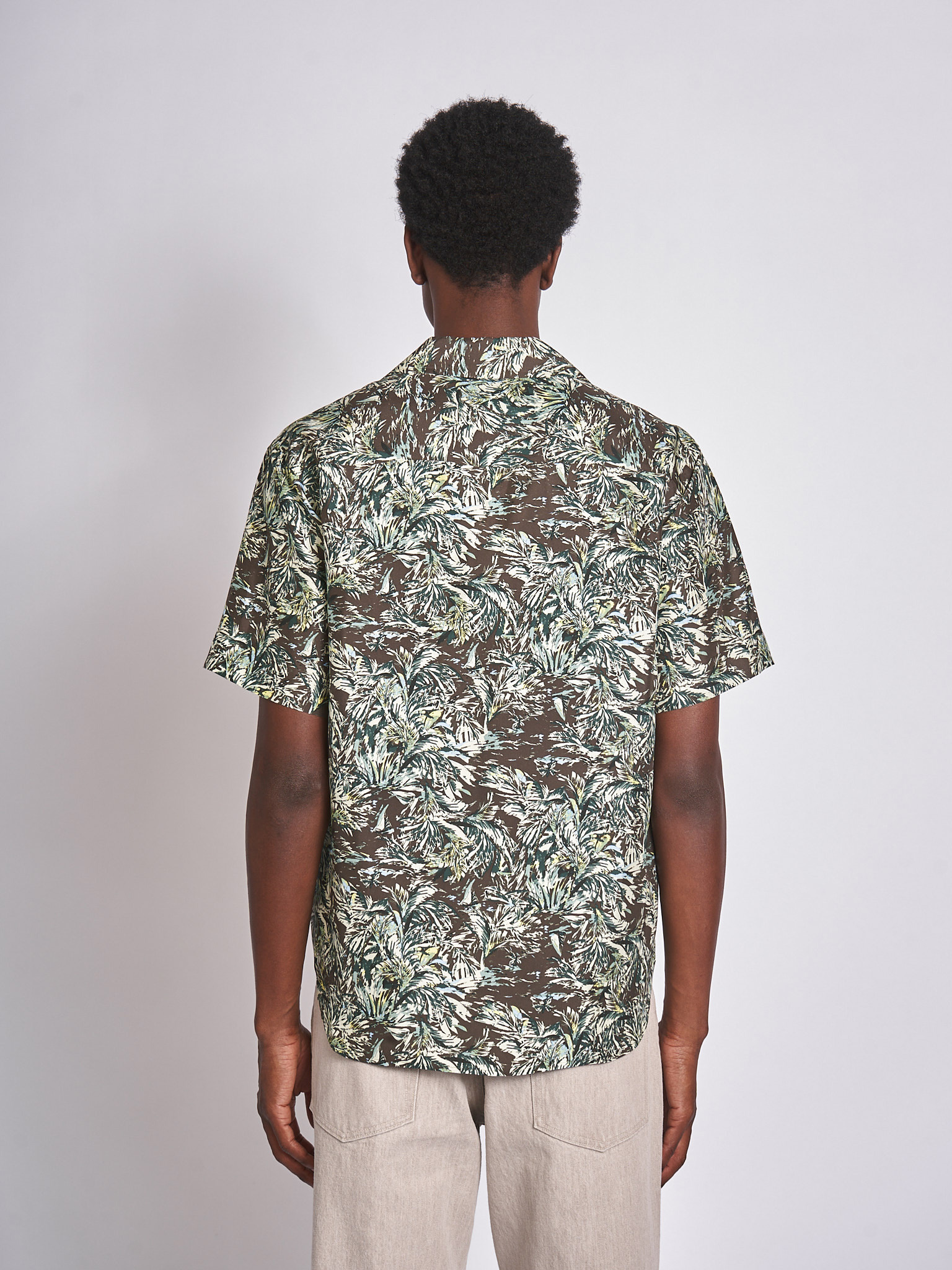 Auralee: Chemise Printed Airy Silk Half-Sleeved Brun Foncé