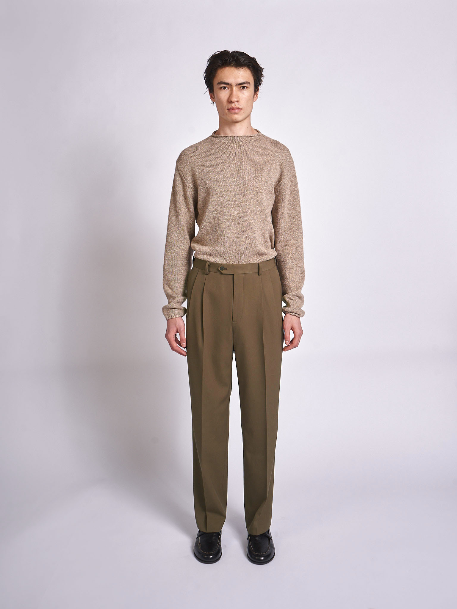 Pantalon Light Wool Max Two-Tucks Olive Fonçé