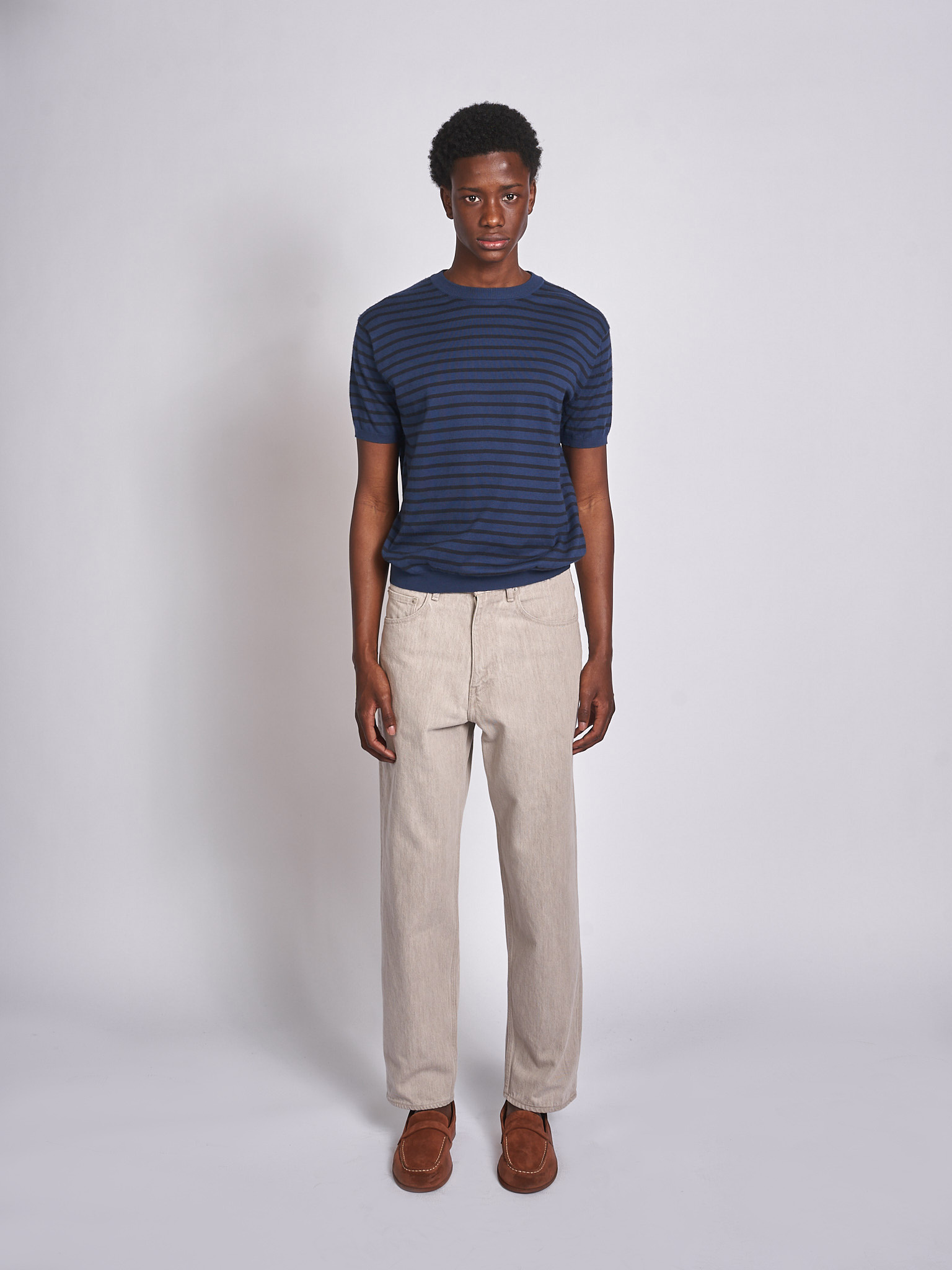 T-Shirt High Gauge Cotton Knit Bleu Rayures Marines