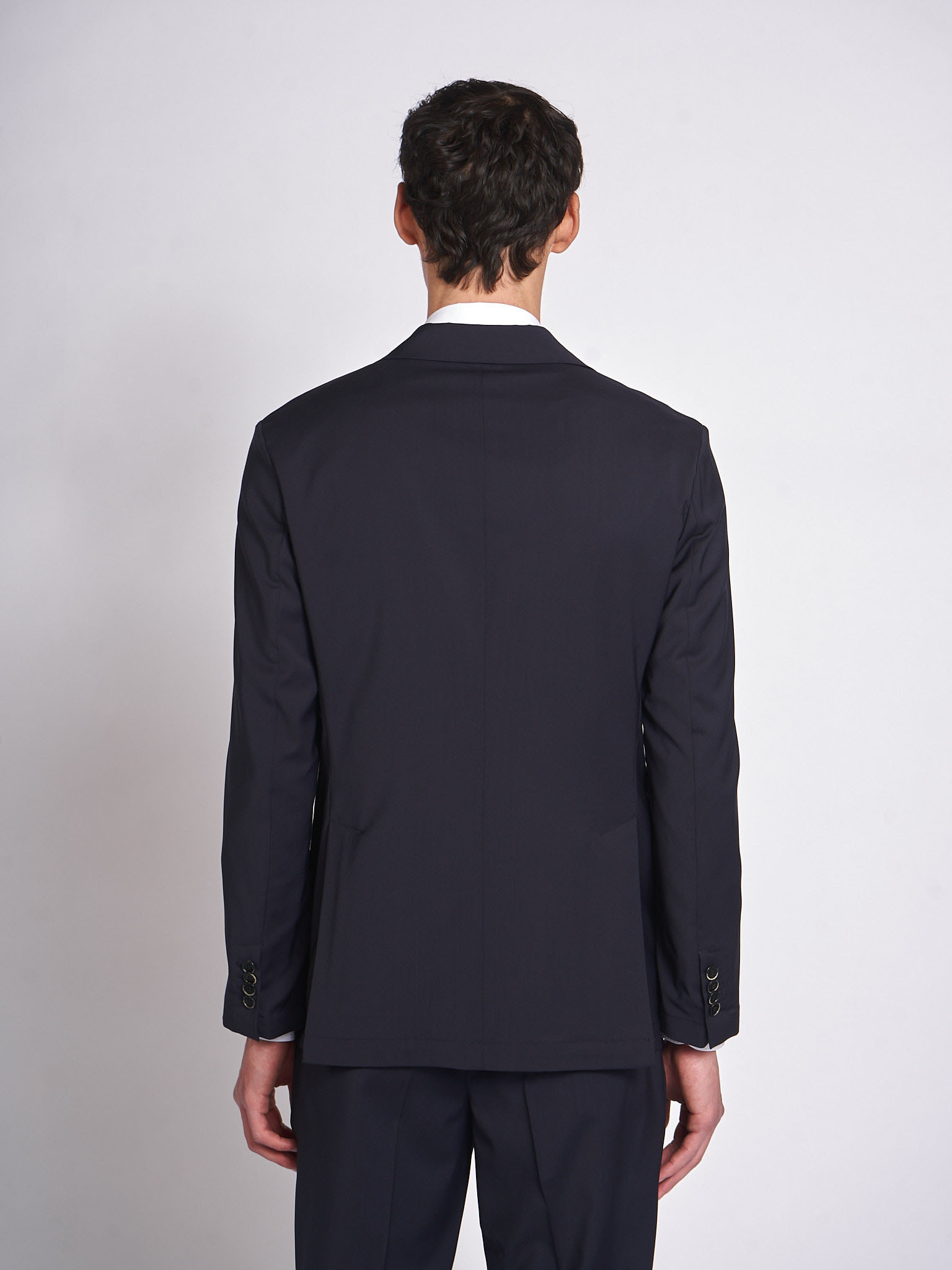 - Pinces sur le devant, coupe régulière, double patte d'aération au dos, couture centrale au dos